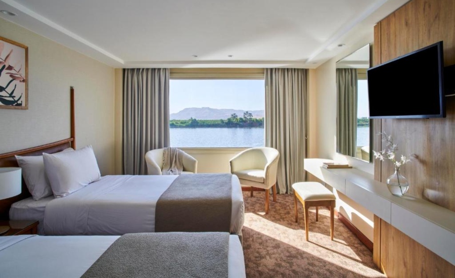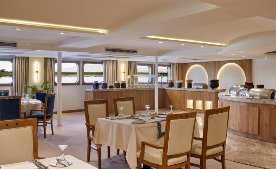 Mövenpick MS Royal Lotus Nile cruise offers deluxe cabins and Suites, where you can actually taste the fine flavor of our hospitality. In every detail from the handmade Egyptian cotton sheets to the natural dark wood furniture. All designed to tickle your senses and enhance your comfort.