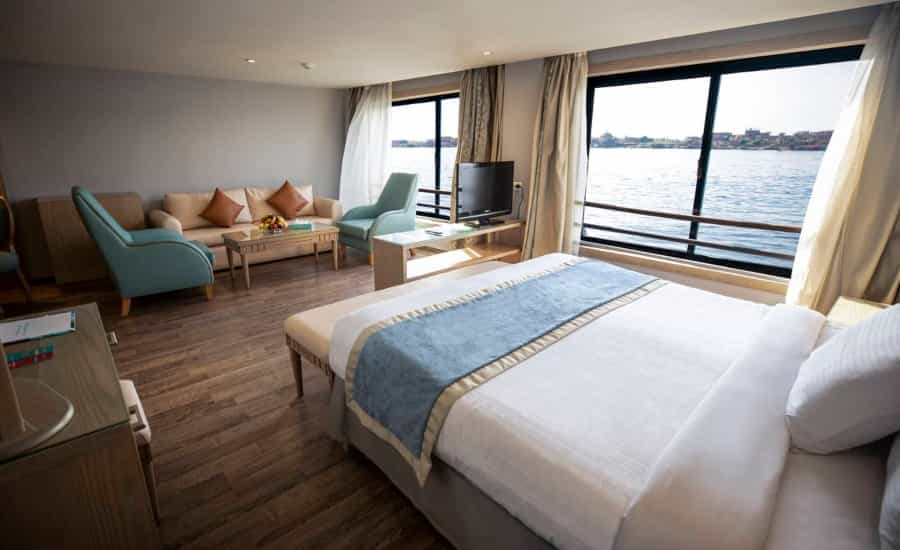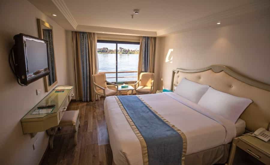 Your journey aboard the M/S Semiramis I promises a delightful blend of relaxation and entertainment. The ship features an expansive sun deck with a refreshing swimming pool, a cozy lounge bar for socializing, and an elegant restaurant offering a blend of Egyptian and international cuisine. As the Nile slowly unfolds before you, the ship’s nightly entertainment—including traditional Egyptian performances—adds a touch of local culture to your journey.