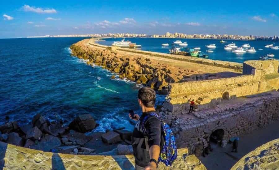 Opposite is the corniche and the old harbor, where you can see fishing boats and traditional fishermen making nets. Pass by the Quaitbay Castle, built on the same site as the ancient Lighthouse of Alexandria. Head then to the gardens of Montaza.