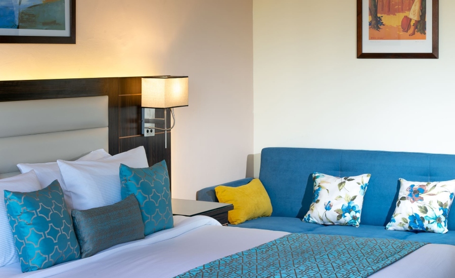 ♦ Amenities include an aqua park, a kids' club, and well-equipped event halls