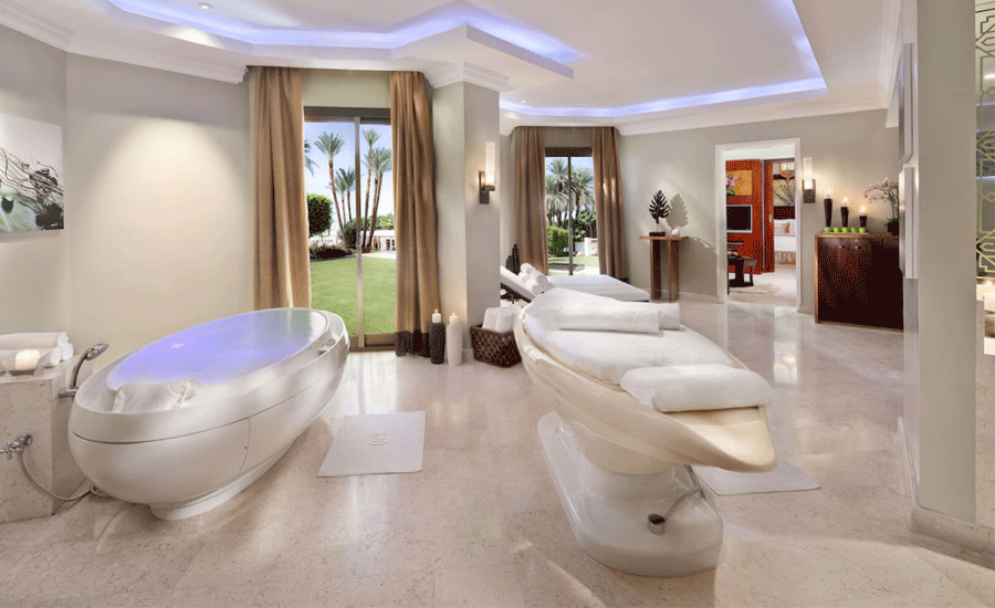 ♦ Features 2 infinity pools, a spa, holistic treatments, and a fitness room