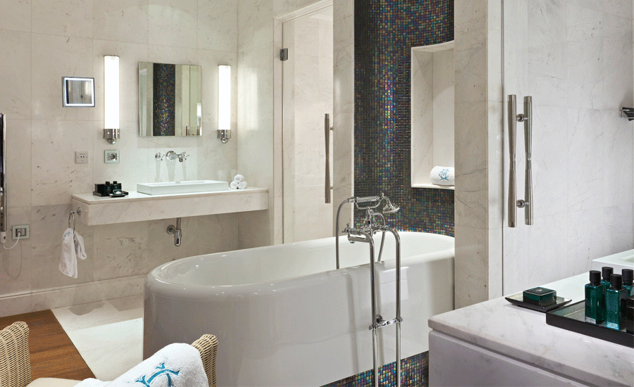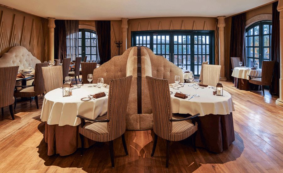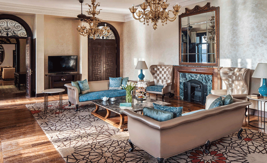 ♦ Features indoor and outdoor pools, spa, hammam, and fitness center