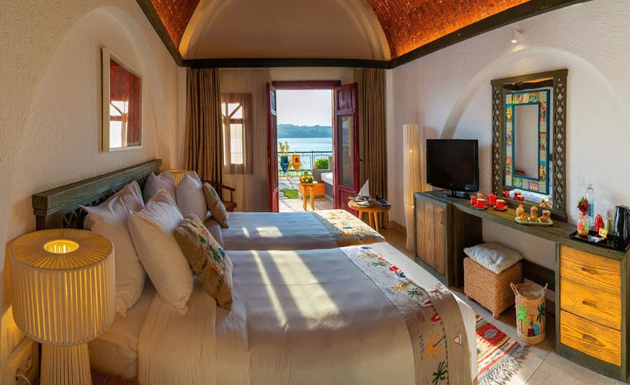 Immerse yourself in a luxurious getaway infused with the vibrant culture and spectacular scenery of the Nile at Sonesta Nouba Hotel, located on the Nile river banks at Aswan. It is a five-star boutique hotel that offers conveniences that cater to your unique travel needs. Each of the 45 guest rooms is designed in the traditional Nubian style and offers a private terrace and sought-after Nile views from every vantage point. It even boasts its climate-controlled crocodile pond. Located near the hotel promenade and because of the mighty Nile, this unique feature represents an important totem of blessings in the Nubian culture—not to mention a can’t-miss photo opportunity.