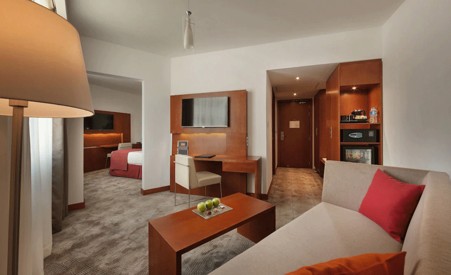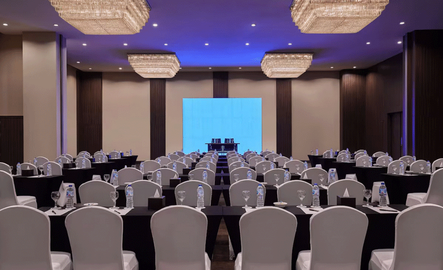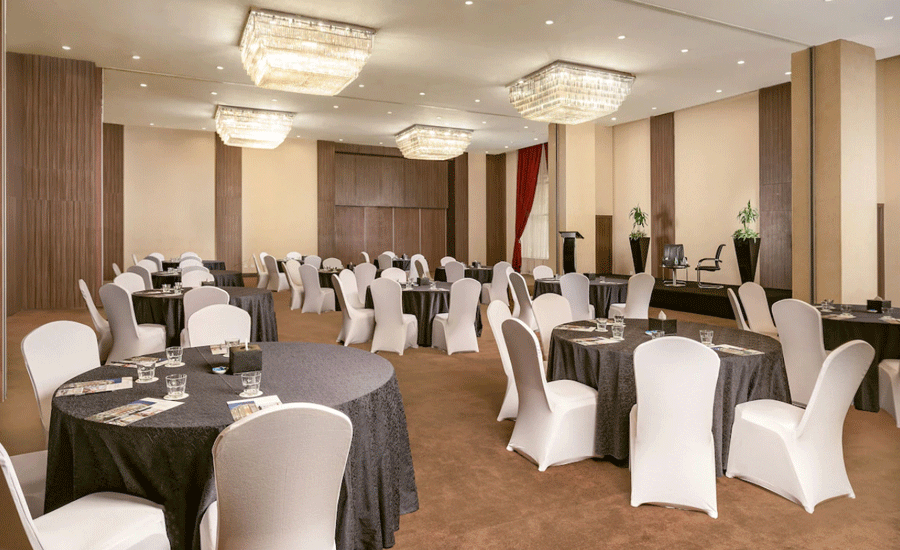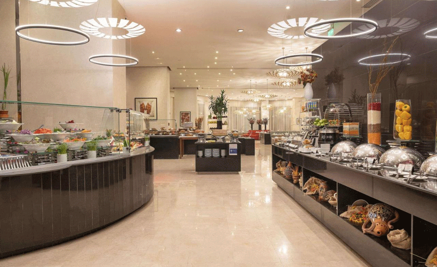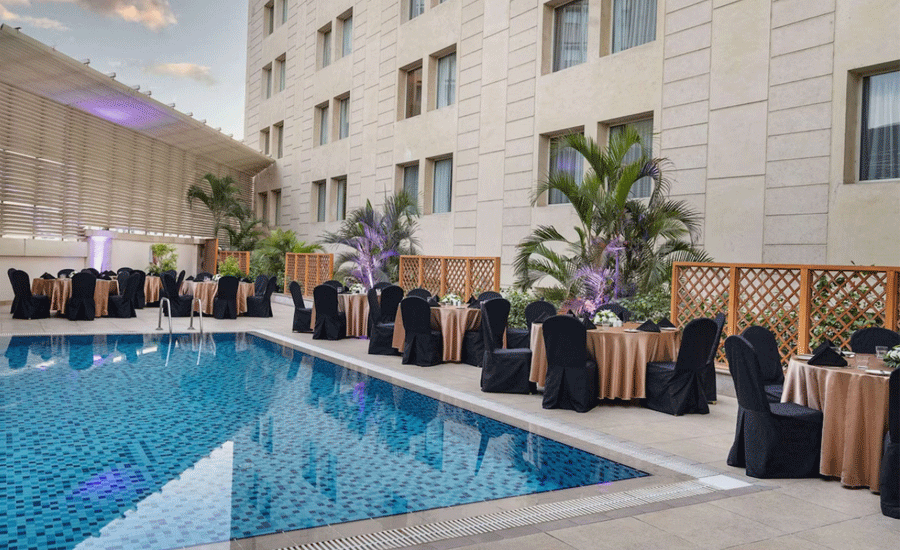 ♦ Offers a variety of culinary outlets, a swimming pool, a gym, and banqueting facilities