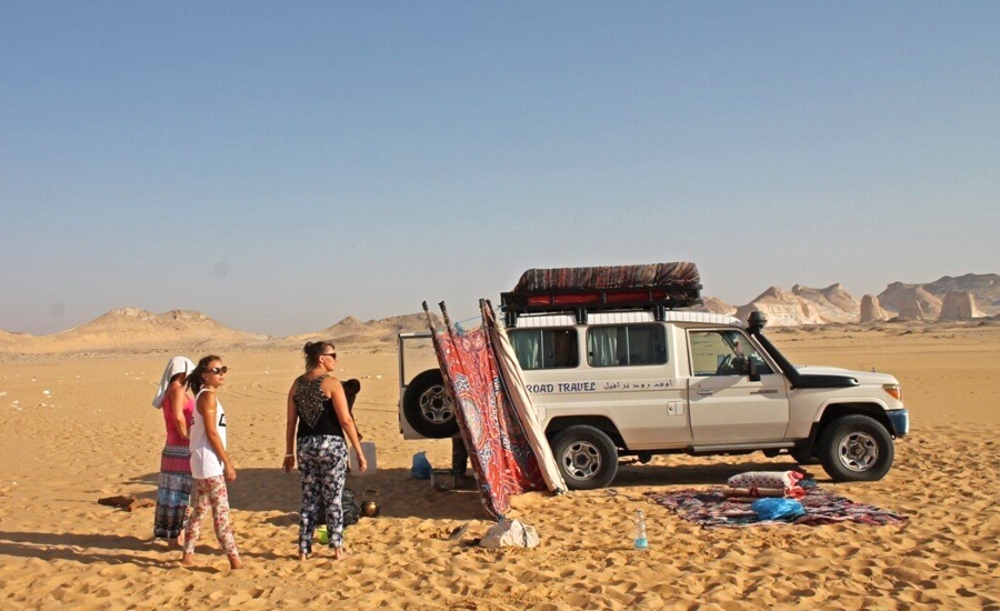Breakfast at camp. Visit El-Marssos Mountain, then El-Hez village with a cold spring. Continue to Crystal Mountain and the Agabat area. After lunch at Green Spring (a Roman-era site), go to the White Desert to see spectacular limestone formations. Later, transfer to hotel for overnight.