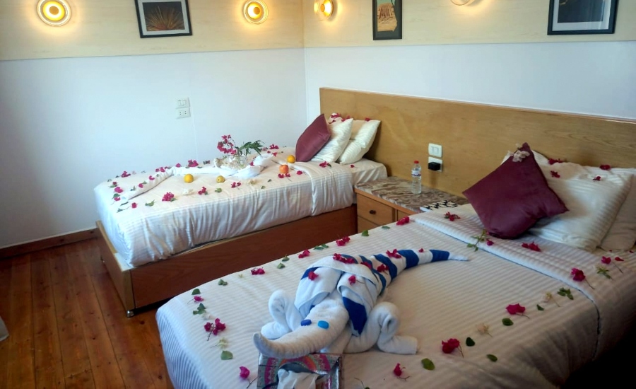 Gentel Breath Dahabiya offers deluxe cabins and Suites, where you can actually taste the fine flavor of our hospitality. In every detail from the handmade Egyptian cotton sheets to the natural dark wood furniture. All designed to tickle your senses and enhance your comfort.