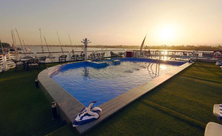 The Royal Ruby II is designed to provide an enriching experience while cruising the Nile. The ship features a sun deck with a refreshing swimming pool, offering the perfect place to relax and take in the stunning views of the river. Enjoy your evenings in the stylish lounge or savor the delectable variety of meals served in the elegant dining room. Traditional Egyptian entertainment is provided on selected evenings, immersing you in the local culture while you unwind after a day of exploration.