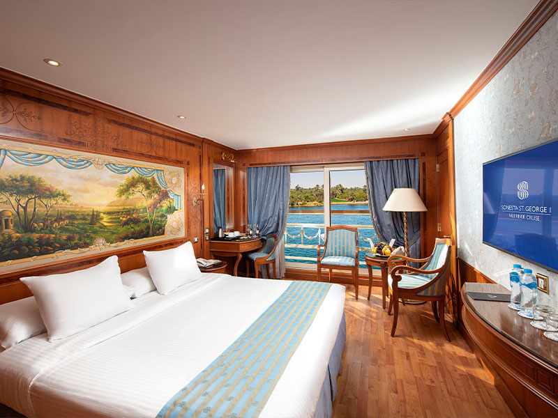 Sonesta St. George I Nile Cruise is noted as one of the most elegant ships on the River Nile. The Sonesta St. George I redefines elegance, style, and comfort on the water. Sailing between Luxor and Aswan, this state-of-the-art ship has exceptional service, fine dining, and a sophisticated ambiance inspired by a blend of modern design and traditional Egyptian charm. Highlights include daily guided excursions to historical landmarks and onboard amenities such as a full-service spa, gym, and breathtaking sun deck.