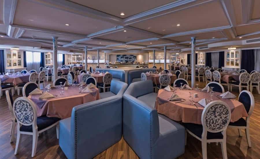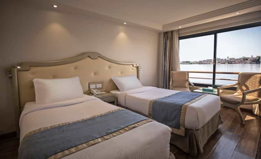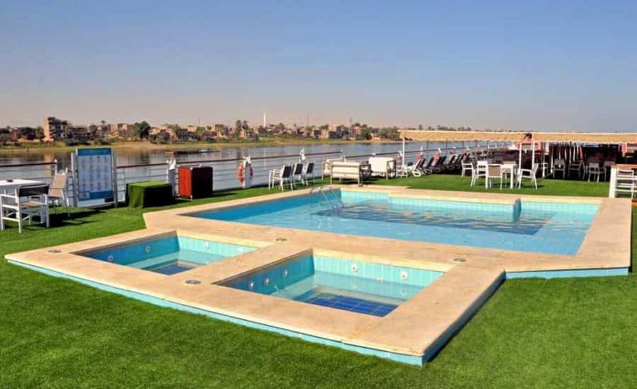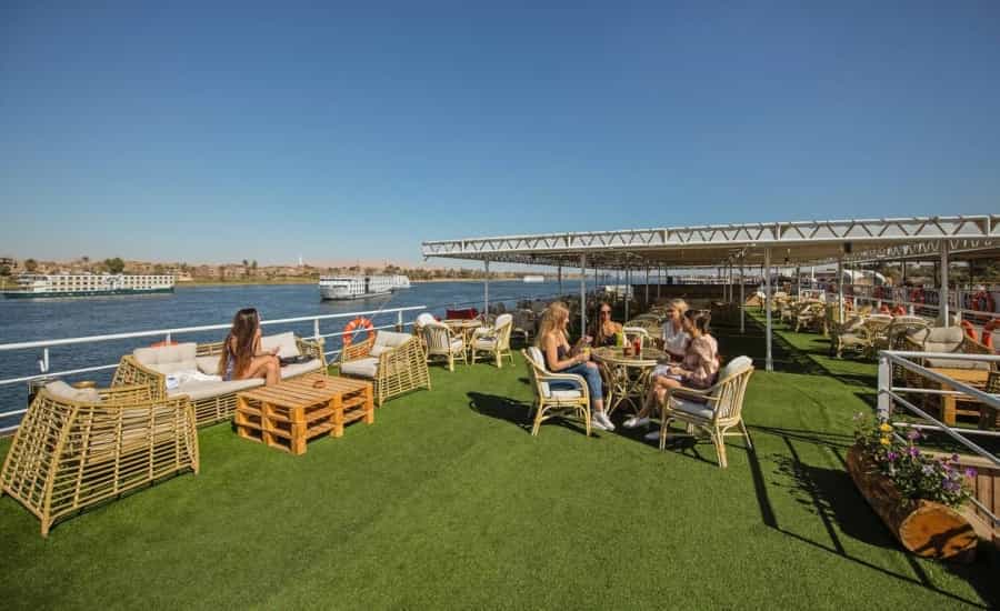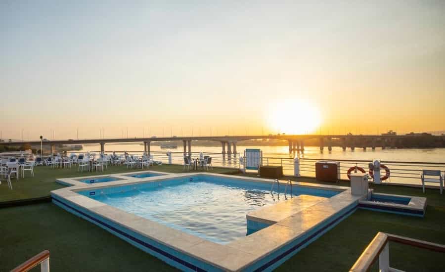 Your journey aboard the M/S Semiramis I promises a delightful blend of relaxation and entertainment. The ship features an expansive sun deck with a refreshing swimming pool, a cozy lounge bar for socializing, and an elegant restaurant offering a blend of Egyptian and international cuisine. As the Nile slowly unfolds before you, the ship’s nightly entertainment—including traditional Egyptian performances—adds a touch of local culture to your journey.