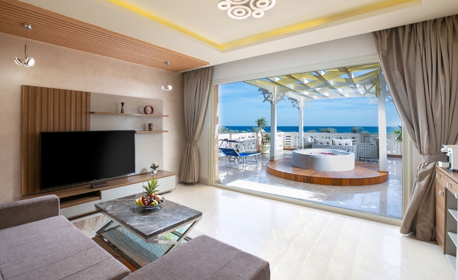 ♦ Amenities include an aqua park, a kids' club, and well-equipped event halls