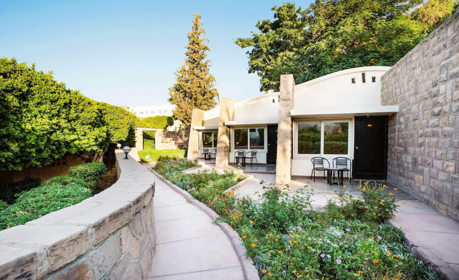 ♦ Features 100 standalone rooms furnished in modern décor with brightly patterned fabrics and wooden furniture