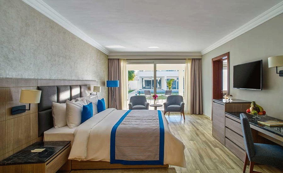 Experience the natural wonders of the Red Sea, complemented by world-class facilities and services at the Maritim Jolie Ville Resort & Casino, nestled in the picturesque Naama Bay. It is the ideal destination for a holiday with the whole family boasting a private beach area, and an array of entertainment options, from strolls along the beach promenade to exciting activities. With an extensive range of shops, restaurants, and nightlife options just a stone's throw away, you're in for a treat. Plus, the hotel's very own "Casino Royale" is sure to captivate you with its diverse selection of games. Get ready for an unforgettable experience in Sharm el Sheikh!