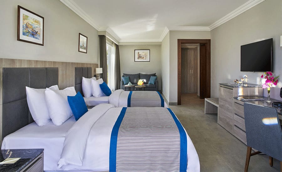 ♦ Nestled in Naama Bay, about 14 km from Sharm el Sheikh International Airport