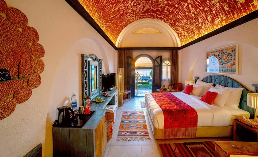 Immerse yourself in a luxurious getaway infused with the vibrant culture and spectacular scenery of the Nile at Sonesta Nouba Hotel, located on the Nile river banks at Aswan. It is a five-star boutique hotel that offers conveniences that cater to your unique travel needs. Each of the 45 guest rooms is designed in the traditional Nubian style and offers a private terrace and sought-after Nile views from every vantage point. It even boasts its climate-controlled crocodile pond. Located near the hotel promenade and because of the mighty Nile, this unique feature represents an important totem of blessings in the Nubian culture—not to mention a can’t-miss photo opportunity.